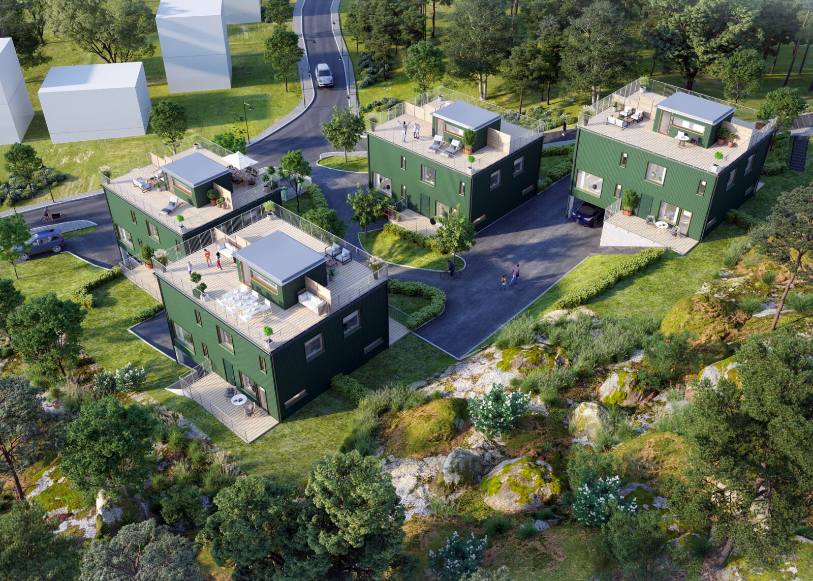 - Omfattning 4 parhus, 2 minivillor