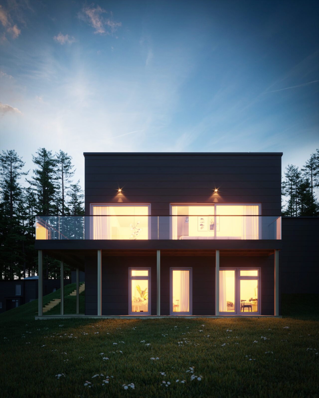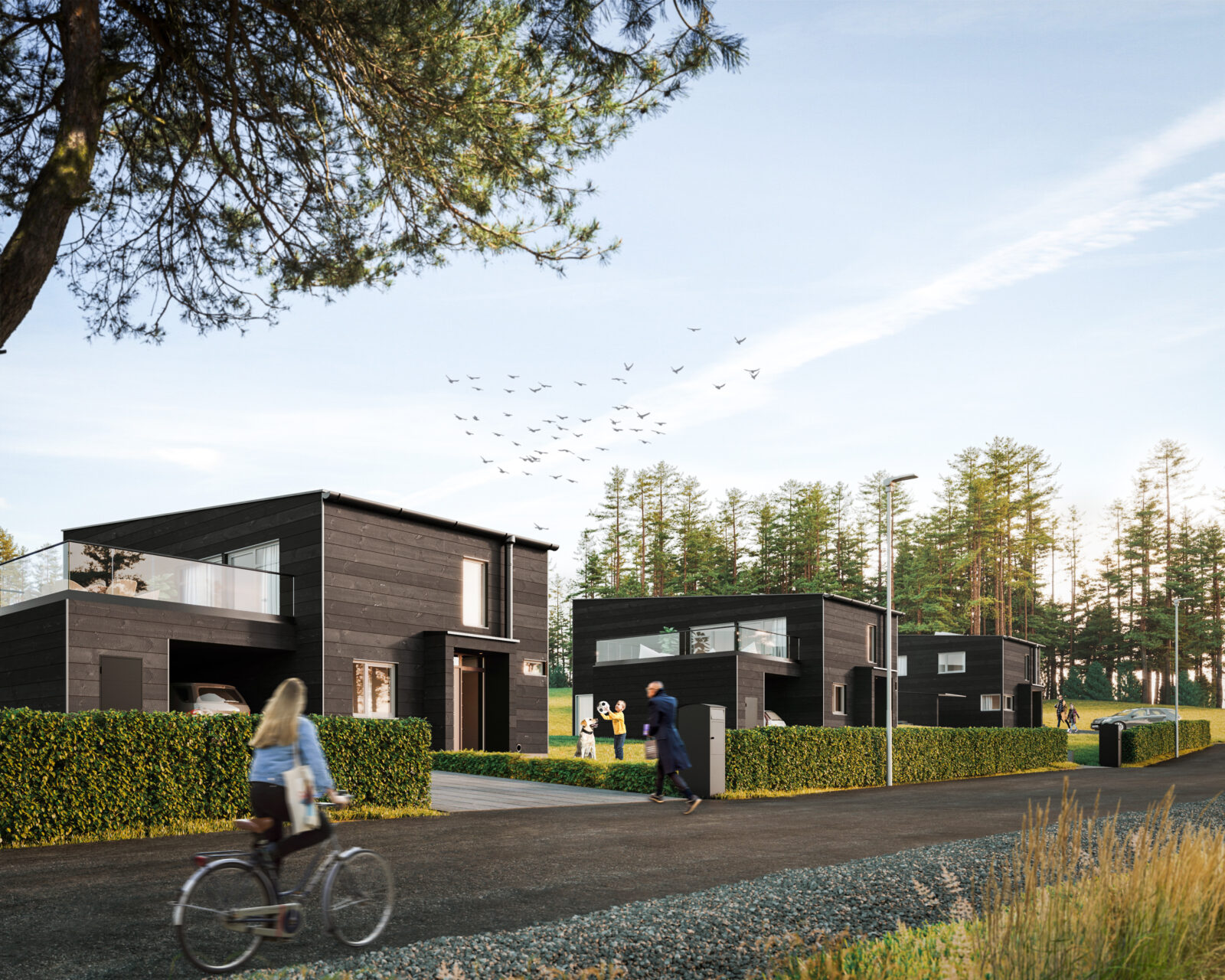 Det är moderna arkitektritade hus med platsbyggd trästomme som ger riktig kvalitetskänsla. Stora fönsterpartier skapar underbart ljusinsläpp. Husens tak är förberedda för solceller som med en mindre investering kan producera lika mycket energi som huset konsumerar för uppvärmning och varmvatten.
