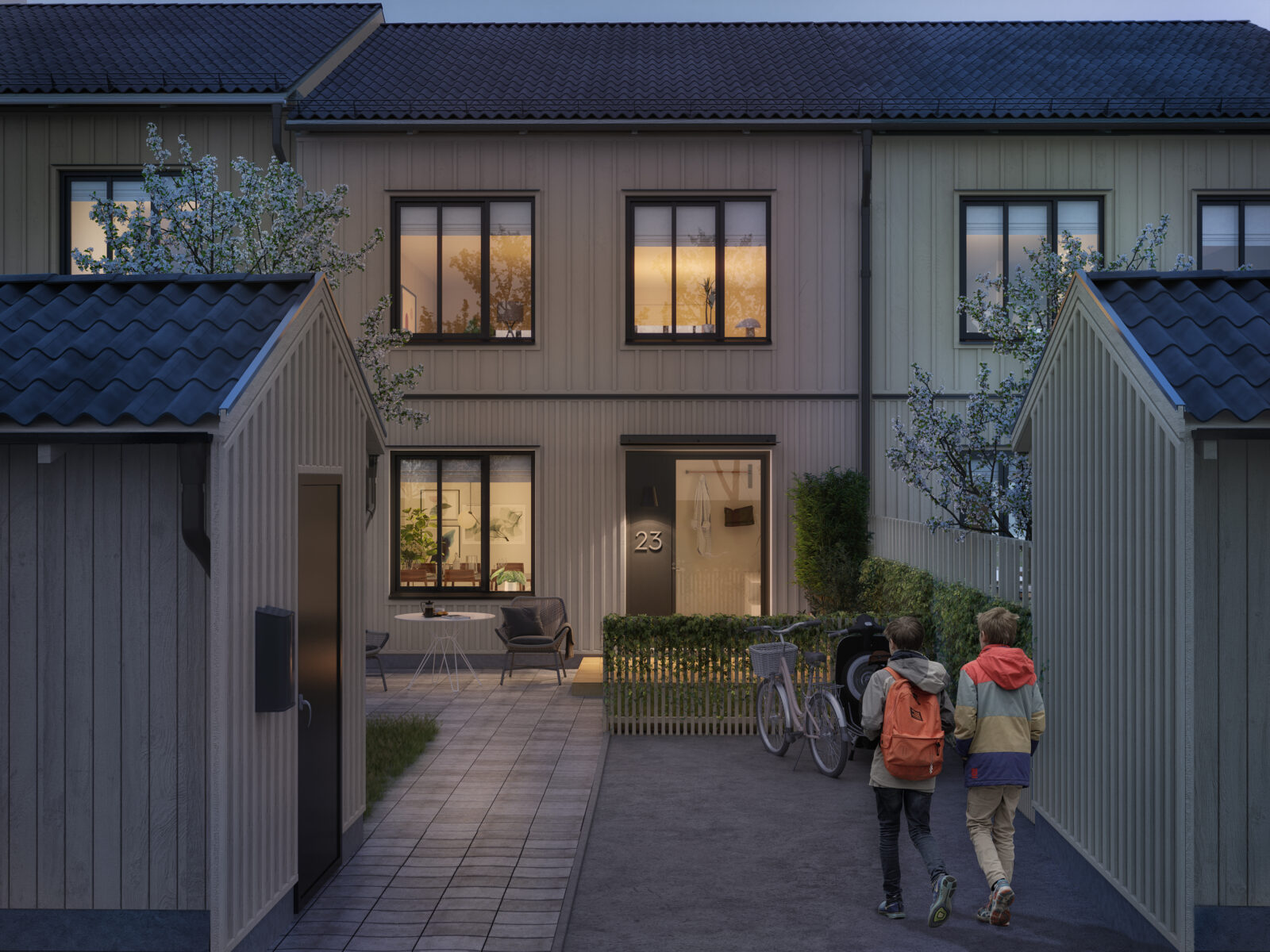 I barnvänliga Järvastaden bygger Resona 34 radhus fördelat på två hustyper: dels radhus med två våningar över 119 kvadratmeter, dels stadsradhus med tre våningar över 157 kvadratmeter.