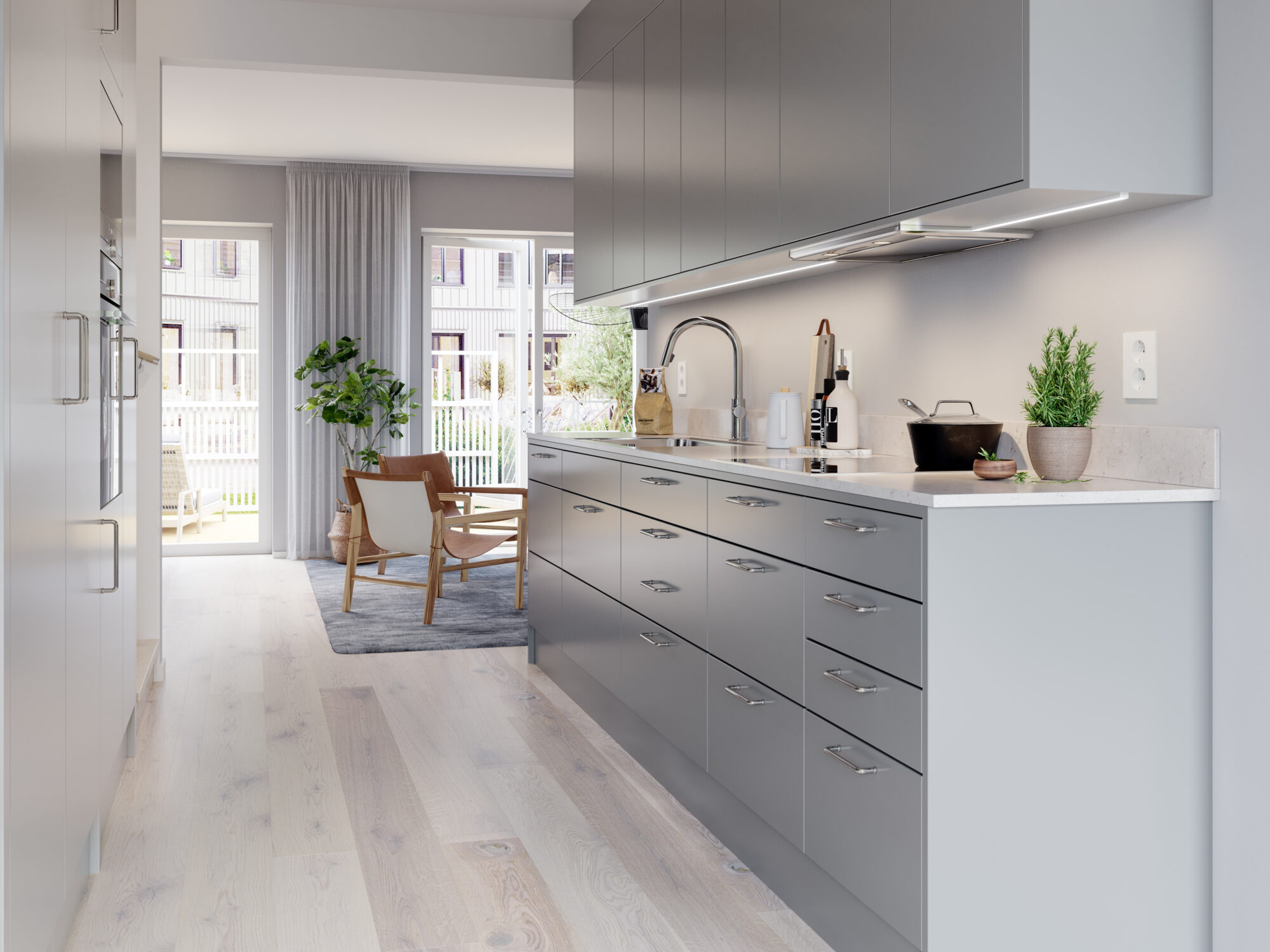 Entréplanet är det sociala hjärtat i huset med ett härligt kök och ett generöst vardagsrum för både vardag och fest. Övervåningen erbjuder fyra sovrum med gott om smart förvaring och ett av rummen fungerar lika bra som allrum, lekrum eller arbetsrum. Stadsradhusen delar planlösningen med radhusen men har i tillägg en tredje våning med obegränsade möjligheter. Är det ett allrum med stor terrass och utsikt över trädtopparna? Eller platsen för ett stort härligt sovrum med egen uteplats? Du bestämmer.